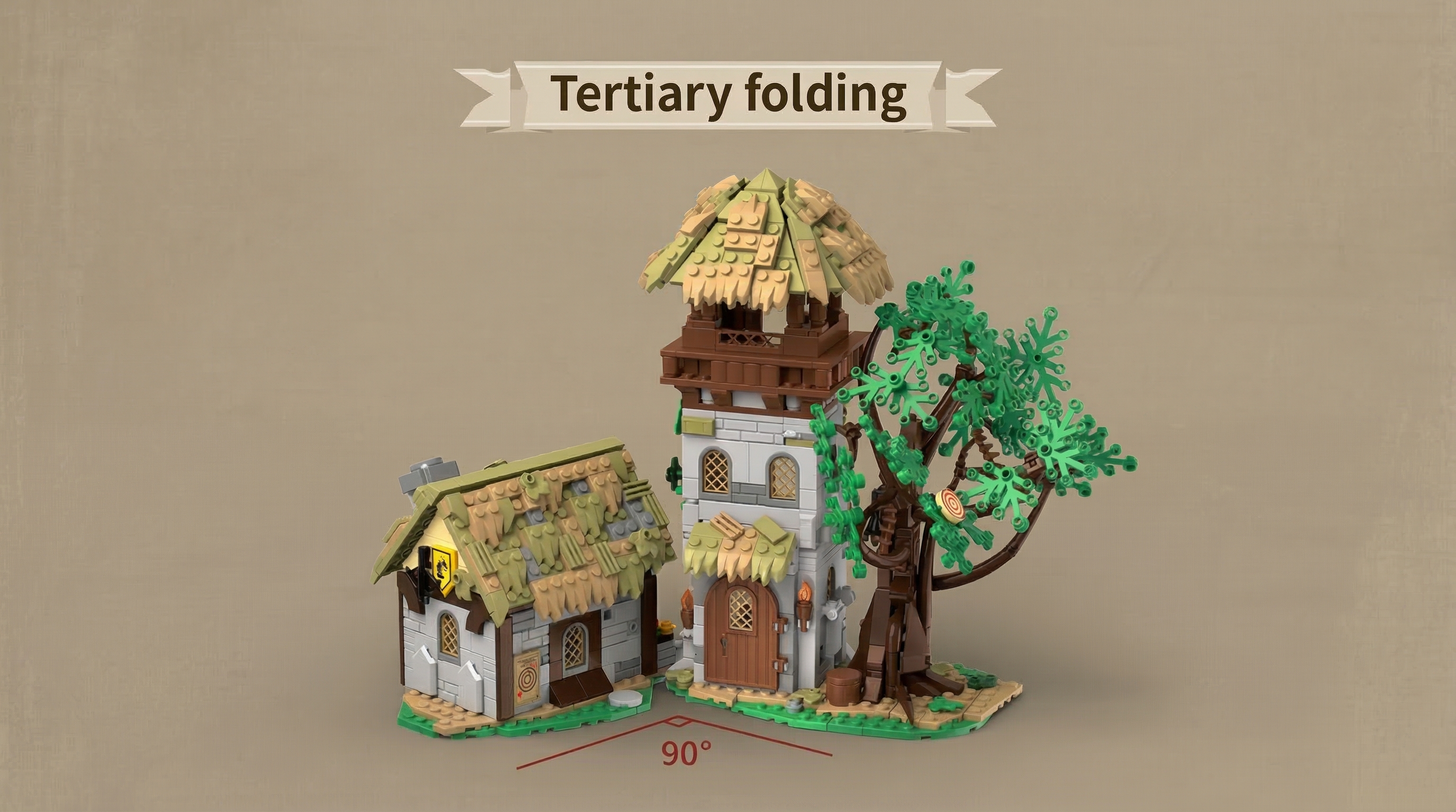 What sets The Greenwood Range apart is its tertiary folding design, a clever engineering touch that lets the cottage and watchtower pivot 90 degrees. This modularity transforms the set from a static diorama into a flexible display, perfect for rearranging to suit your shelf or creating dynamic battle scenes. Whether you tuck the cottage snug against the tower or spread them apart to mimic a sprawling outpost, the set adapts to your vision, making it as versatile as it is visually striking.