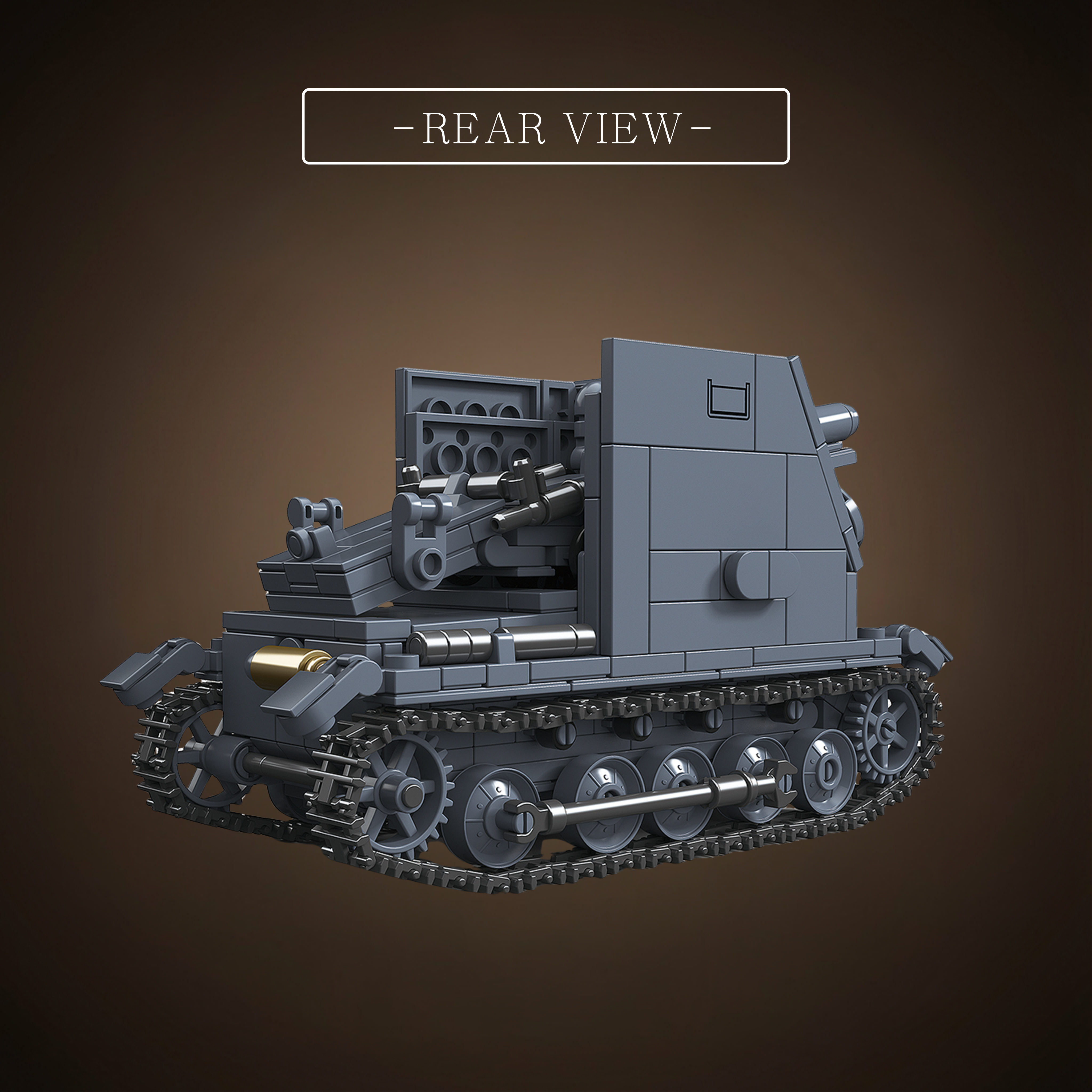 Small touches sell the vibe: reinforced metal chassis pieces nod to the BISON’s tendency to break under its own weight; the gun’s pitch matches the real sIG 33’s elevation limits; even the sloped rear armor, a half-hearted WWII upgrade, gets a brick-by-brick recreation.