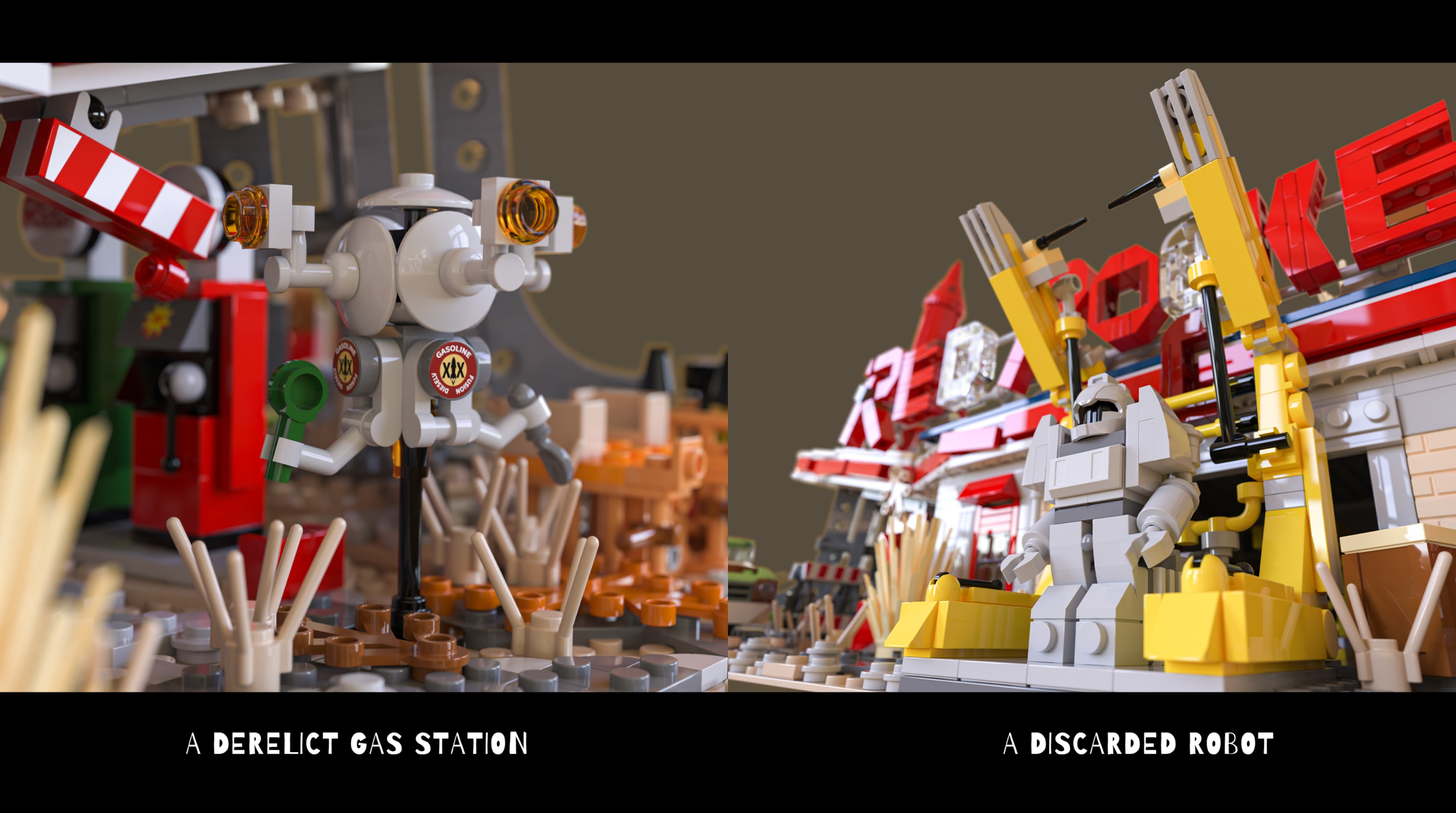What truly sets this set apart is its thoughtful functionality and immersive details. The modular design lets you lift the roof and remove side panels to explore a fully realized interior, complete with a brick-built service counter, shelving units, and a small nook that evokes the idea of a weary traveler stopping for a refill. Exterior details are equally intentional: tiny gas pumps with textured nozzles, a scattered array of toolboxes and fuel cans, and a small, weathered vehicle accessory at the pumps add layers of storytelling. The set also includes a base with textured “asphalt” and sparse, spiky vegetation pieces that ground the scene, making it feel like a genuine roadside stop in the wasteland. Even the small touches, like a tattered flag and a discarded robot arm leaning against the wall, add depth without cluttering the design.